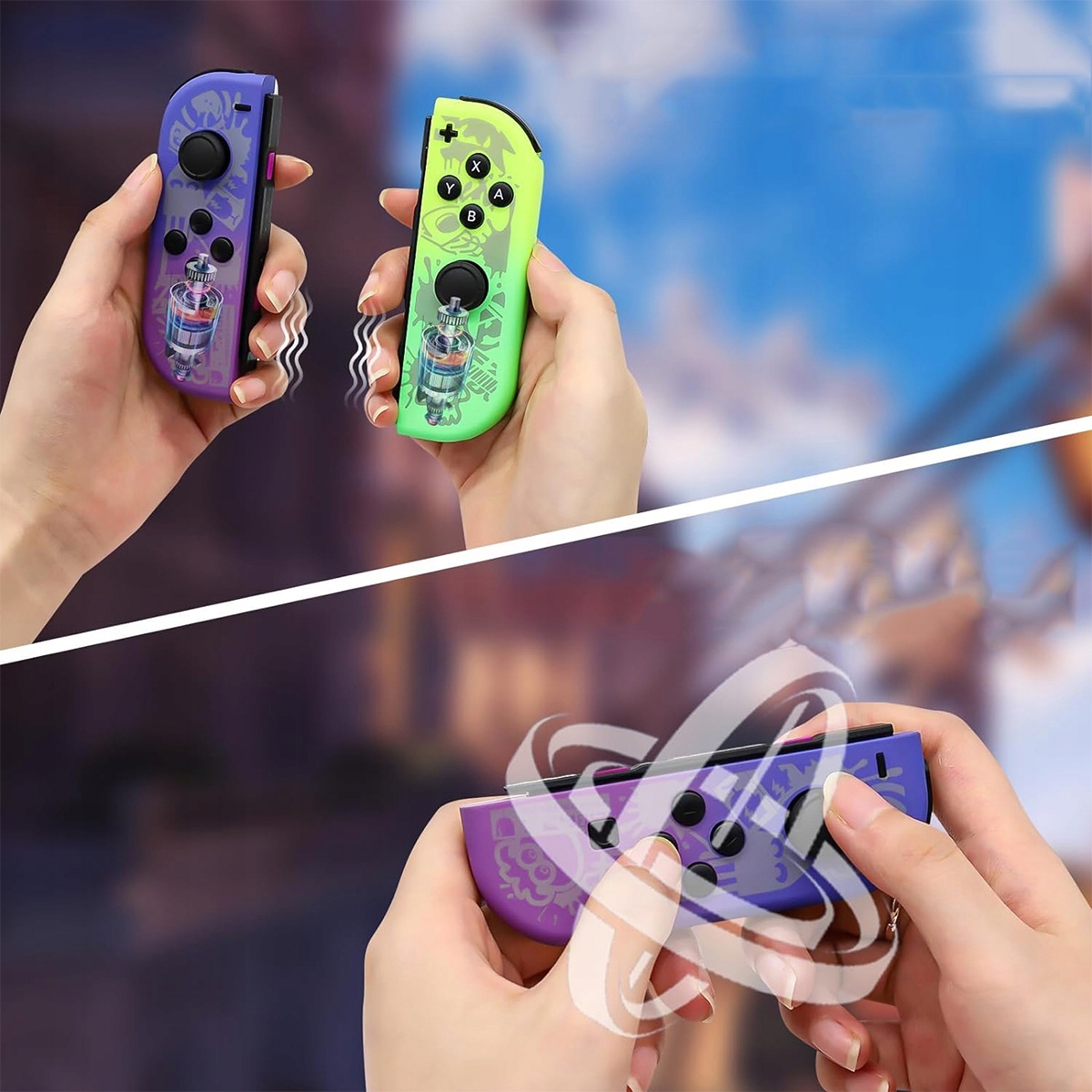 - Як заміна контролера комутатора Nintendo, контролер оснащений соматосенсорною та вібраційною функцією з двома двигунами, щоб забезпечити реальний та стимульований ігровий досвід. Поділіться грою з друзями, використовуючи функції скріншота. Коли консоль знаходиться в режимі сну, натисніть і утримуйте кнопку домашньої кнопки на контролерах, щоб прокинутися на 1 с - 2 с.