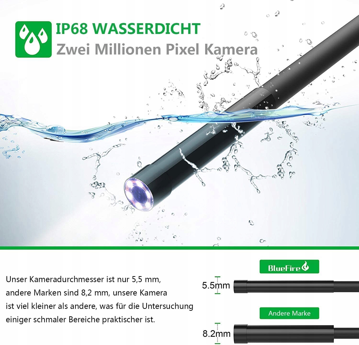 Функція масштабування зображення Ви можете збільшити або зменшити зображення чи відео, щоб побачити деякі темні ділянки. Просто натисніть клавішу або , щоб встановити 3 режими збільшення та звуження Справжня камера з роздільною здатністю 1080p. Ця оглядова камера має 3 роздільності HD 1920 x 1080 1280 x 720 640 x 480, якщо ви виберете 1920 x 1080, ви побачите надзвичайно чіткі зображення або записуватимете високу якість. відео. Висока ємність акумулятора 1800 мАг і простота використання завдяки вбудованій літій-іонній батареї 1800 мАг час роботи може досягати 34 годин, що набагато довше, ніж у більшості інших WiFi-корескопів, які працюють менше години. Завантажте програму в Google Store або App Store. Підключіть смартфон через Wi-Fi, відкрийте програму і на екрані відобразиться живе відео. Камера діаметром 55 мм Ця ендоскопічна камера має деякі додаткові вдосконалення на основі наших існуючих жовтих бездротових ендоскопів, які можуть підтримувати перегляд відео в реальному часі, запис відео та фотозйомку тощо. Її камера діаметром 55 мм набагато менша та корисніша у вузьких і важкодоступних місцях. такі місця, як ремонт транспортних засобів, перевірка повітроводів, перевірка вентиляційних труб тощо. Широка сумісність і водонепроникність за стандартом IP68. Ця камера для плавання підтримує смартфони Android з Android 4.4 вище та iPhone або iPad через iOS 6.0 або планшет. Порада iOS 8.0 старіші не можуть записувати відео. Камера та кабель водонепроникні за стандартом IP68 і можуть використовуватися у вологих і темних трубах або під водою. Порада Приставка WiFi не є водонепроникною