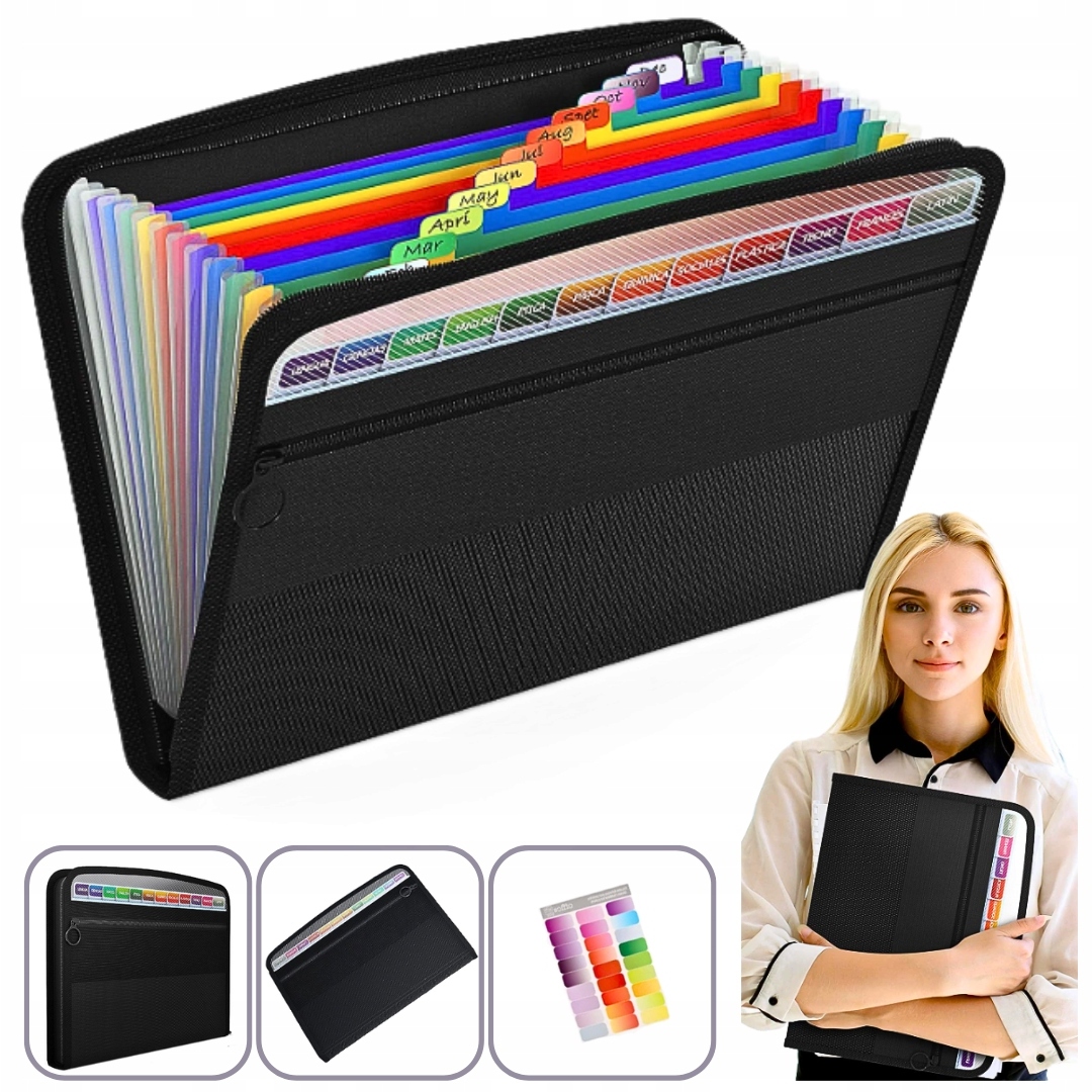 розширений організатор ABC Life для документів із сітчастою сумкою, папка A4 Accdion з 13 кишенями, організатор для документів, що розширюється папкою для документів із закриттям блискавки, розширена папка, організатор документів, чорний