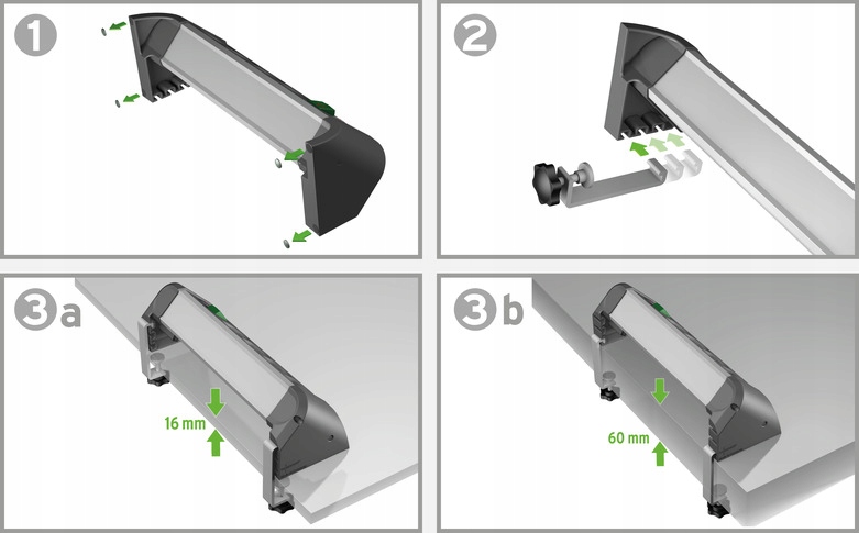 - Табличні затискачі із замикаючими гвинтами за допомогою, що ви можете легко встановити живлення смуги Alu-Office-Line (1391044410) на столі та мати прямий доступ до розетків.