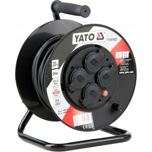 Розширення барабана високого класу, довжиною 20 м з 4 розетками. Кабель виготовлений з 3 мідних вен з перехресним розміром 1,5 мм². Такий перехресний розріз кабелю дозволяє підключити 4 пристрої до цих подовжкових шнурів, що особливо корисно на будівельному майданчику, на майстерні або виробничому заводі. Кабелі покриті ізоляцією, виготовленою з натуральної гуми H05RR-F, яка характеризується високою стійкістю до механічних пошкоджень, атмосферних факторів, хімічних речовин (охолодження та мастила, бензин або етиловий спирт, метилові спирти). Така ізоляція забезпечує напругу 300 В / 500 В. Крім того, шнур розширення виготовляється відповідно до стандарту IP 44. Завдяки використанню плагінів пилу та бризок, це дозволяє використовувати ці розширення як у приміщенні, так і зовні, наприклад. на будівельному майданчику, в саду, на квадратах перед виробничими рослинами. Завдяки Bryzgoszcznośc та пилостійкості, він забезпечує чудовий захист від вологи або пилу та піску.