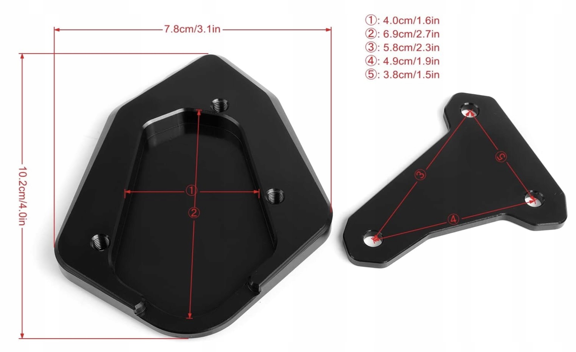 Розширення бічної стійки є ідеальним рішенням для мотоциклістів, які борються з проблемою падіння мотоцикла на м’якій землі. Додаткова накладка збільшує поверхню контакту з землею, що позбавить вас від напруги. Вам більше не потрібно шукати камінь чи дошку, щоб поставити під підставку, коли ви вирішите зробити перерву в полі.