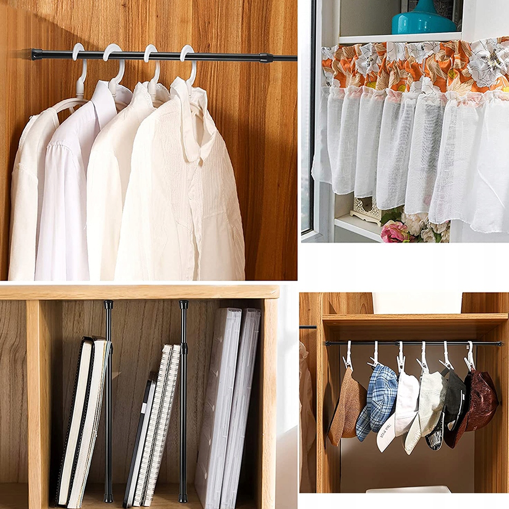 - Широкі застосування: короткі регульовані натяжні стрижні ідеально підходять для дверей висотою кімнати, штанг для шаф, дверей і вікон, вішалок для одягу, сушильних штанг, щоб підтримувати порядок.