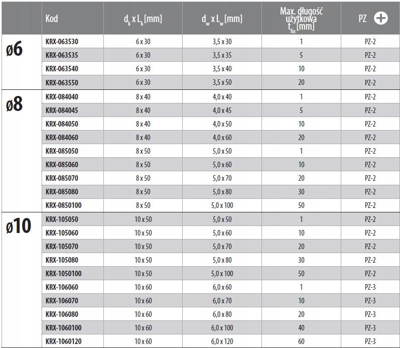 Розширення штифтів з головою головою PZ 6x35x40 200 шт.