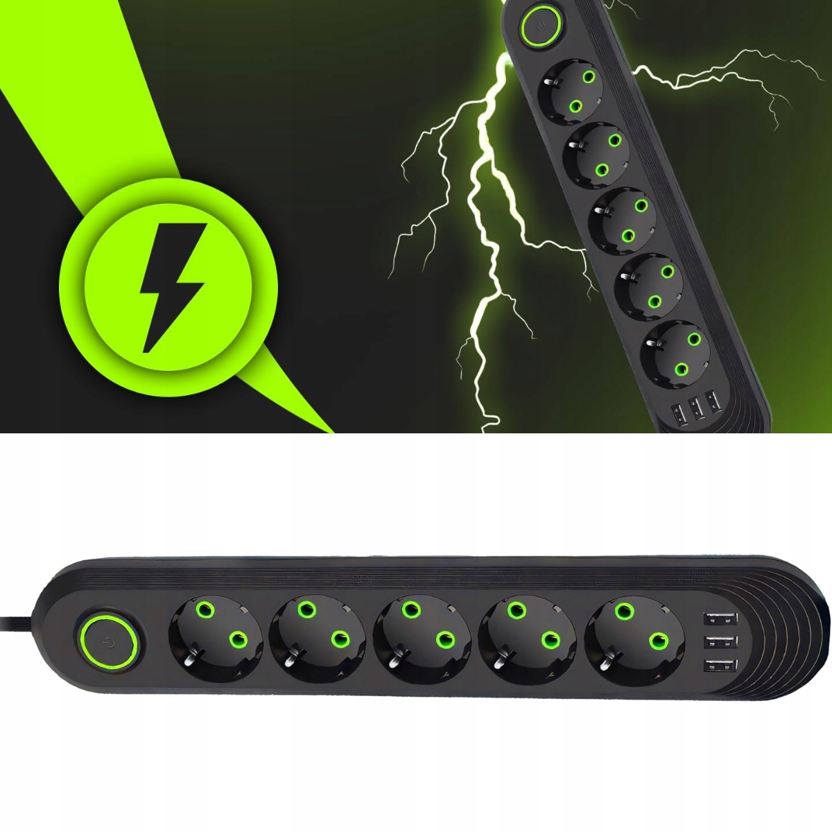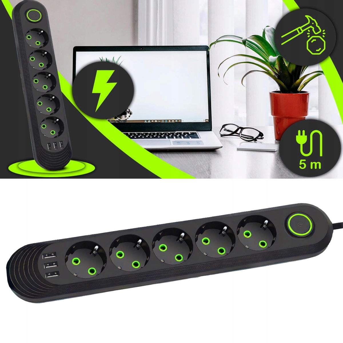 Практична та суцільна смуга Постачання цього рішення, що сприяє щодня , використовуючи багато пристроїв одночасно . Оснащений 5 мережевими розетками та 3 портами USB, це дозволяє підключати як електричне обладнання, так і заряджання мобільних пристроїв без додаткових зарядних пристроїв. Завдяки 5 -метровому кабелю, у вас є багато свободи в встановленні смуги, а вбудований перемикач дозволяє легко відрізати джерело живлення на всі підключені пристрої. суцільне виконання, заземлення, а також сертифікати CE та ROHS гарантують безпеку та довговічність.