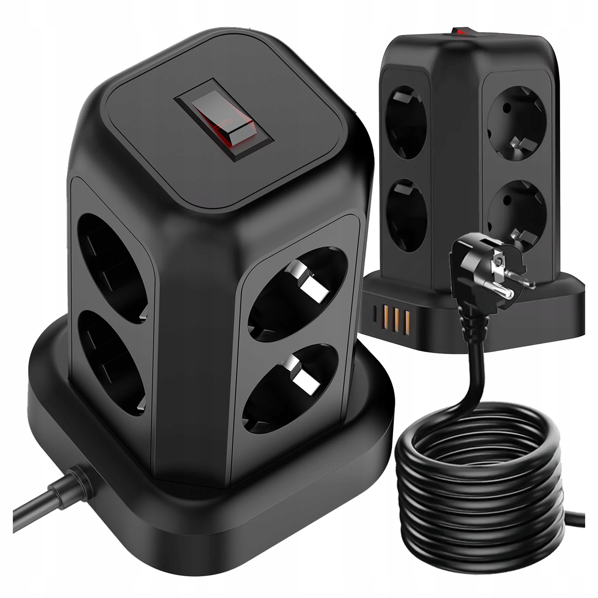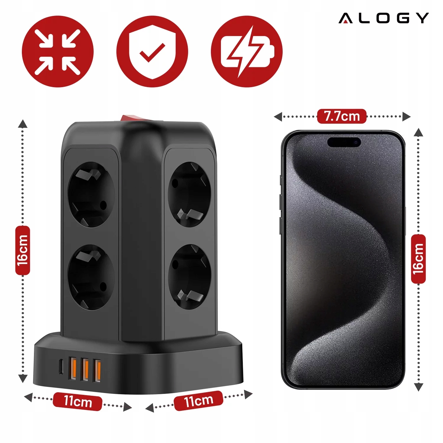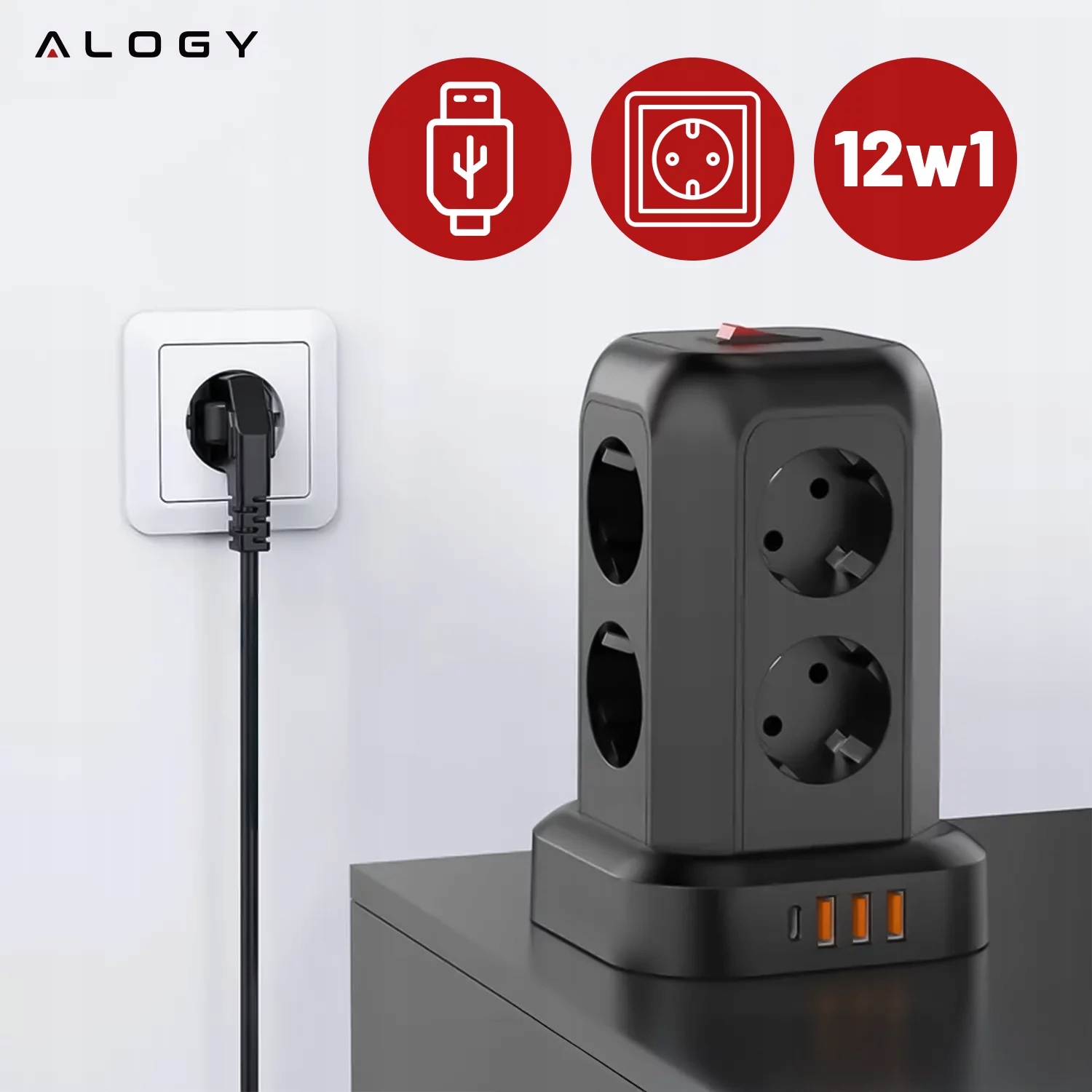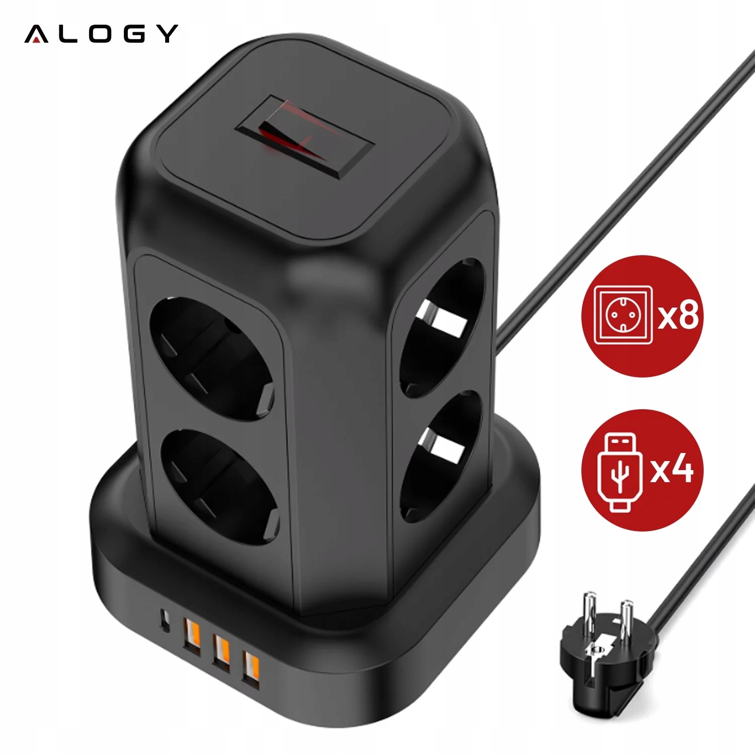 ▶ ️ Alogy Powertower Pro 8 Район 4 USB Surgeguard ™ 1700J Чорні розетки