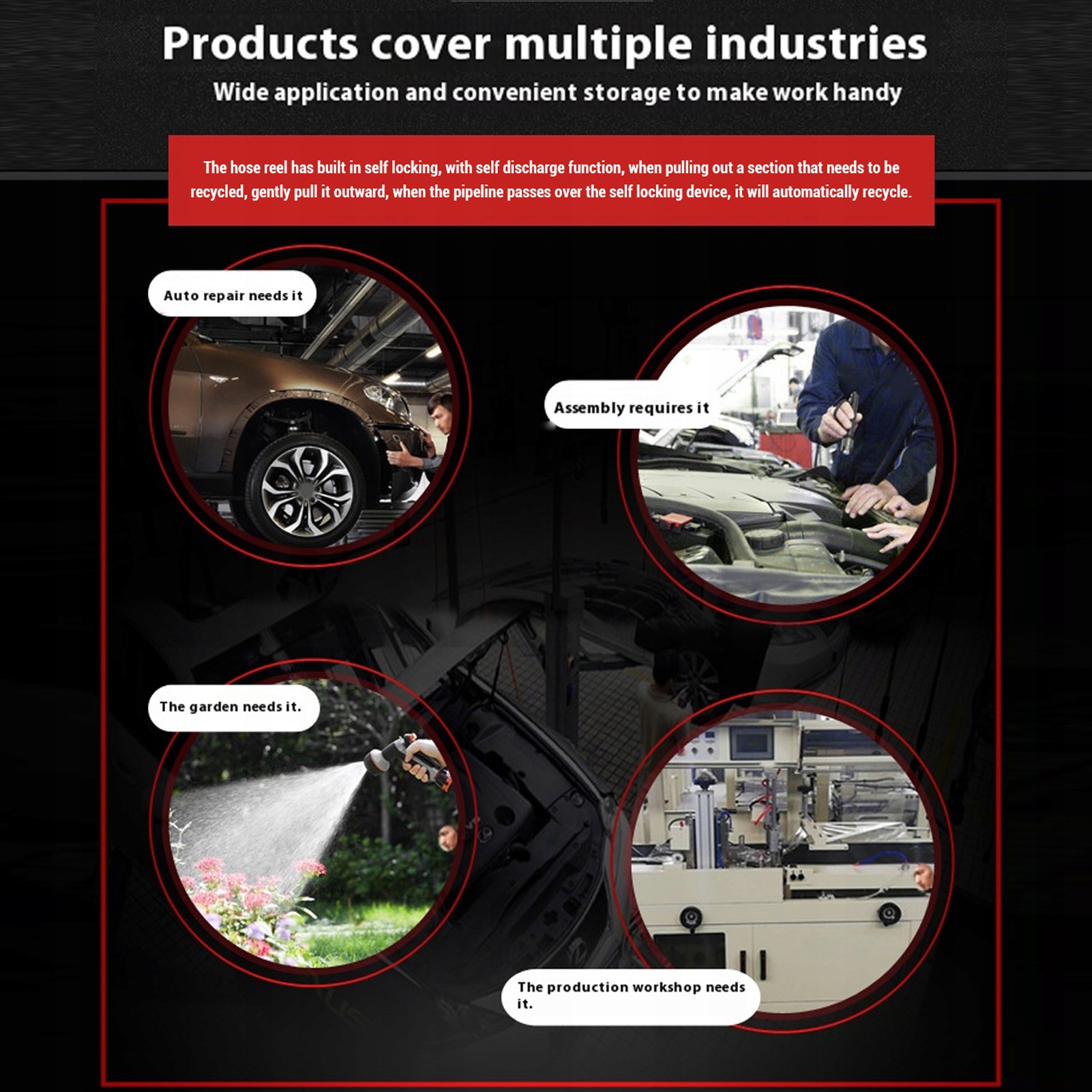 1. Applications: This hidden hose coat helps to store a snake and drain various tasks, thanks to which it is suitable for the car repair, workshops, home studies, garages and even mobile mechanics
