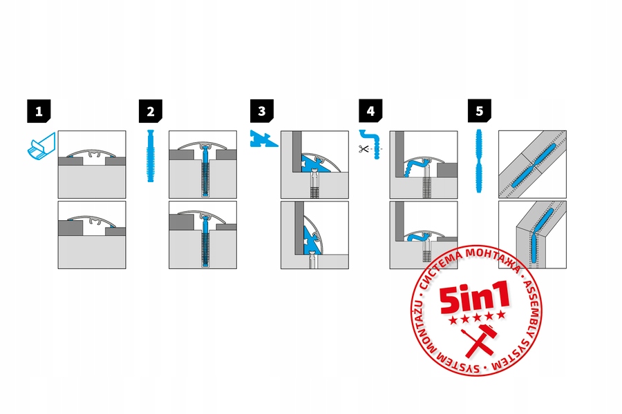 - можливість з’єднання кількох профілів завдяки спеціальним з’єднувачам (в комплекті)