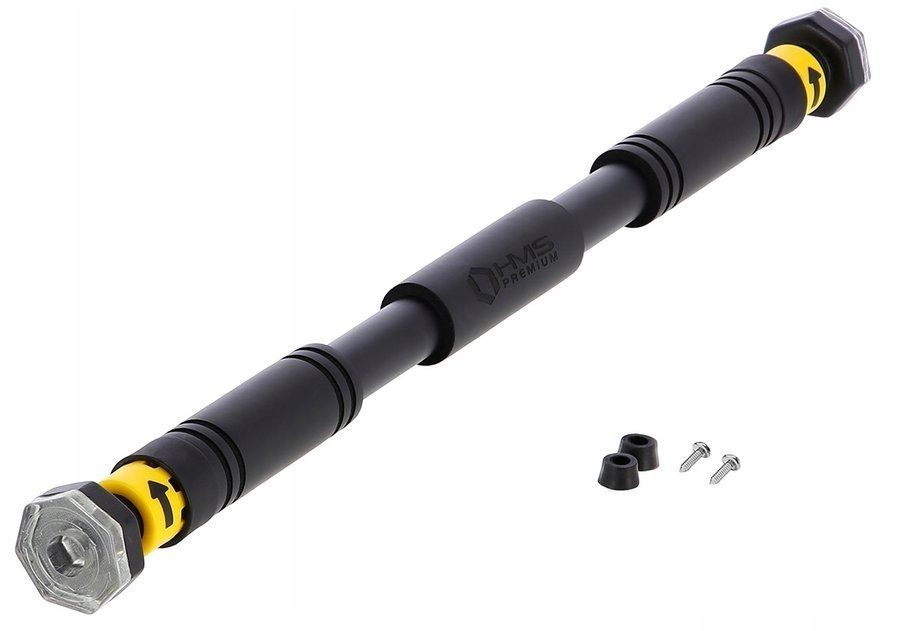 DD200 HMS PREMIUM - розпірна планка з дуже міцної сталі. Продукт є ідеальним рішенням, коли немає місця для повнорозмірного домашнього тренажерного залу.Широкий діапазон регулювання довжини в діапазоні: 66,5 - 100 см дозволить вам легко знайти місце для встановити планку. Планка має багато переваг, які підтримують навчання та гарантують безпеку. Тверді силіконові накладки забезпечують стійке положення штанги, а фіксатор запобігає її обертанню. Ручки покриті спеціальним матеріалом, який вбирає піт і запобігає ковзанню рук.