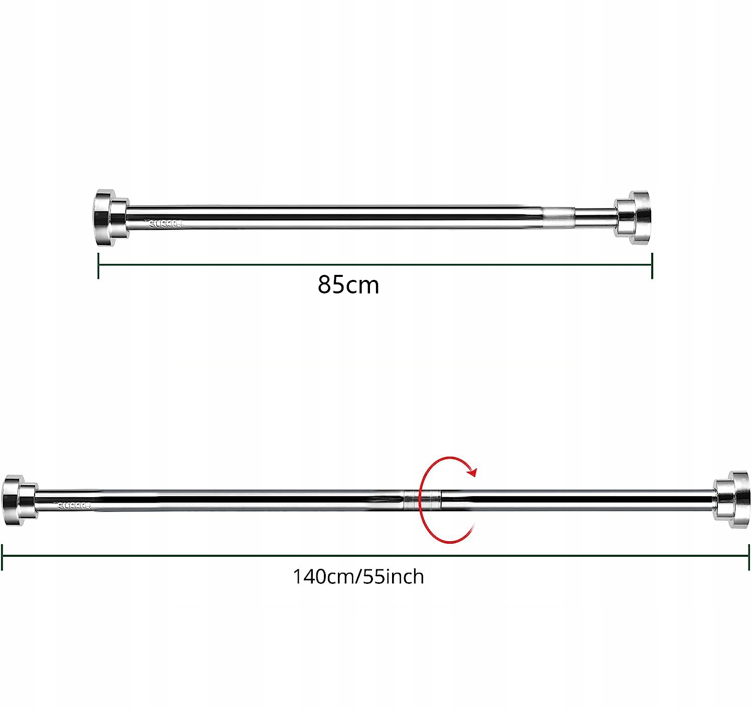 Цей пружинний карниз призначений для душу. Виготовлений із полірованої вручну нержавіючої сталі 304, він стане міцним доповненням до вашої ванної кімнати. Душова штанга також ідеально підходить для сушіння білизни, розвішування штор і не згортається. Натяжний карниз кріпиться за допомогою пружини і не зачіпає матеріал стіни, застосовний до будь-яких поверхонь. Його також використовують для поділу кімнати, кухні, спальні або балкона. Душова штанга з натягом забезпечує витончений сучасний профіль. Для легкого поєднання з навколишнім декором.