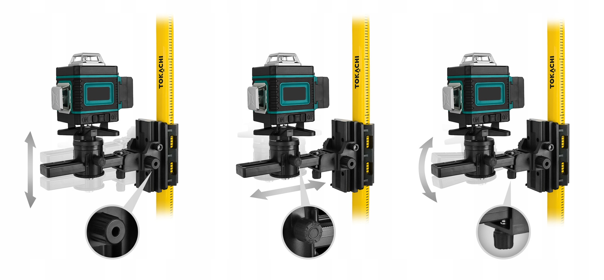 - Горизонтальне регулювання вздовж платформа: дозволяє переміщувати лазер або рівень ліворуч або праворуч, не змінюючи положення всього штатива.