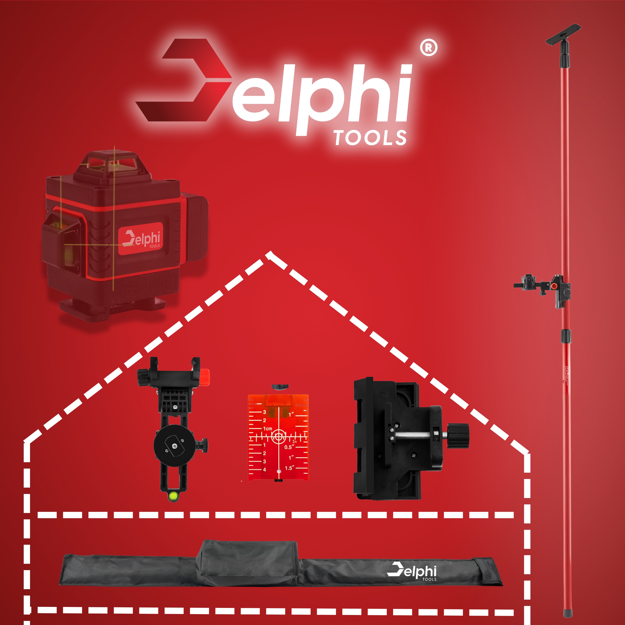 Телескопічний стовп Delphi полегшує ремонтні роботи, під час яких використовуються нівелювальні та поперечні лазери.