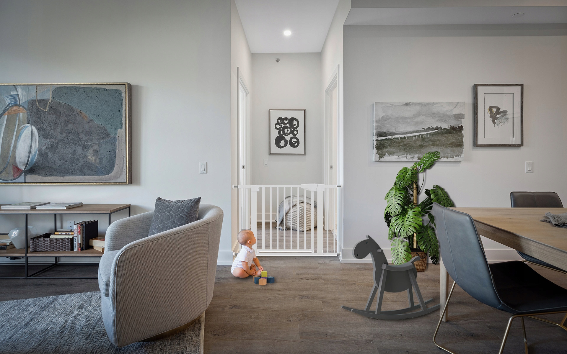 Guardian – це універсальні ворота, які безпечно кріпляться не лише до стіни чи огорожі сходів, а й до дверної коробки. Ворота не залишають слідів на рамі, безпечні для дверей, легко встановлюються та знімаються.
