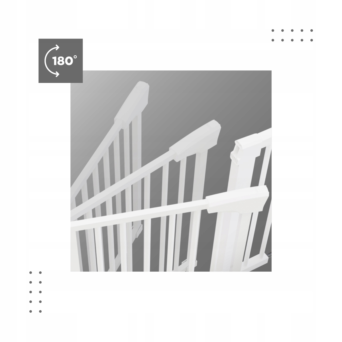 Ворота для сходів і проходу є чудовим рішенням, коли ми хочемо захистити певний простір і відокремити його для використання дитиною. Ефективний механізм закривання та відкривання дозволяє дорослим комфортно користуватися проходом і водночас ефективно запобігає перетину перешкоди дітьми.