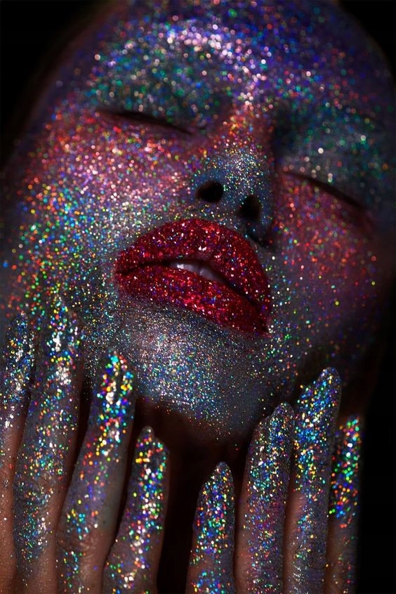 Гліттер можна наносити на нігті, обличчя, тіло чи волосся. Завдяки йому ми можемо досягти цікавих ефектів як на нігтях, так і ідеально підходить для створення художнього макіяжу. Завдяки йому ми можемо робити татуювання на тілі. Ідеально підходить для вечірок, щоб отримати дивовижний завершальний штрих або прикрасу.