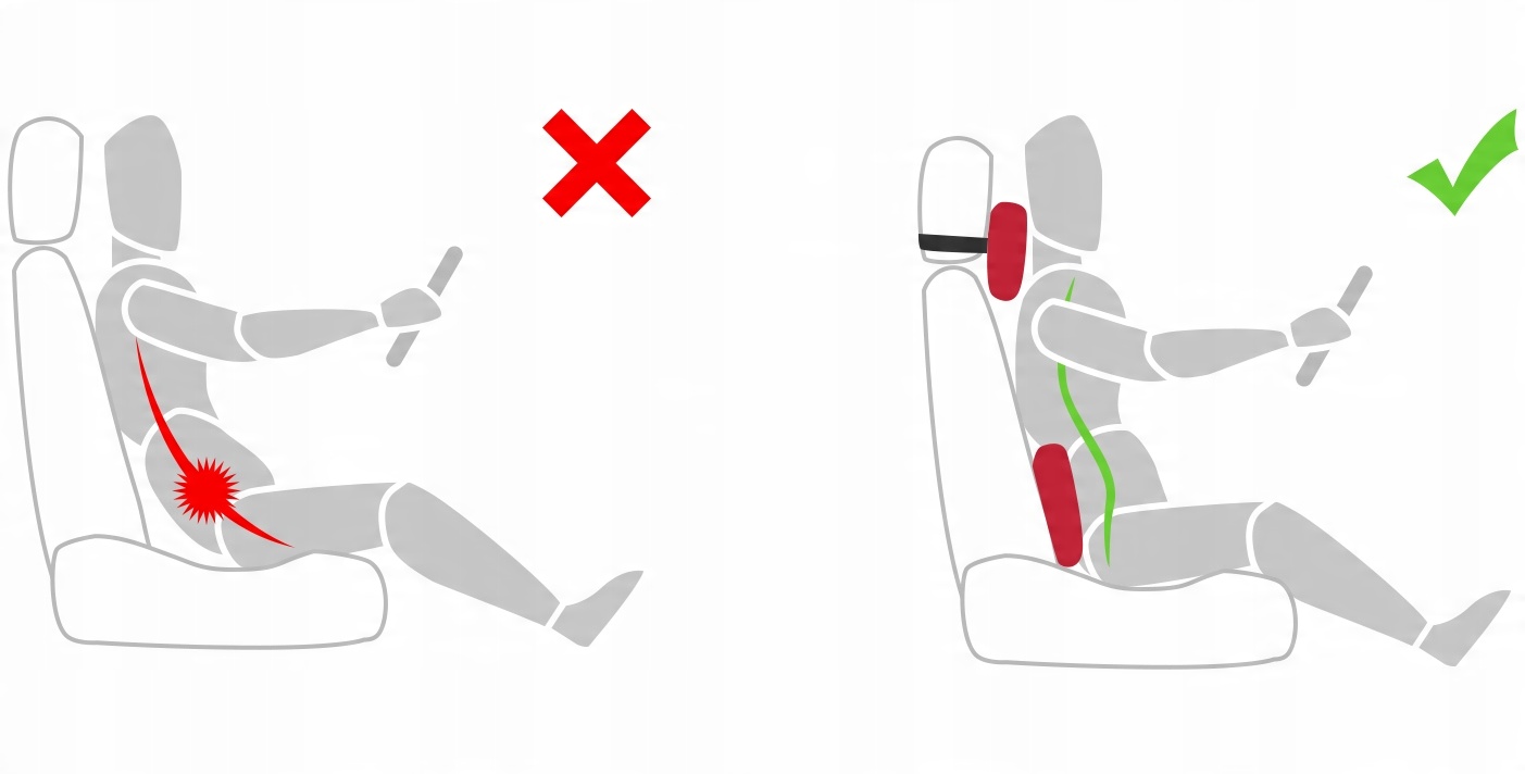 - Допомога Правильне положення за кермом і змішайте болі попереку та верхню частину хребта