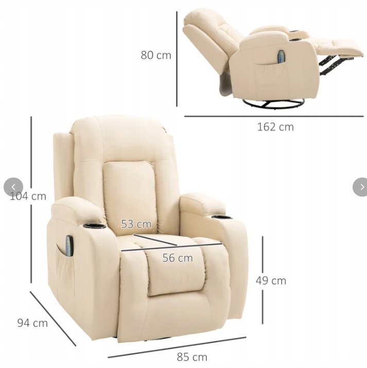 - Massage: 8 points vibration massage points, waist, thighs and lower leg Massage: 15/30/60 min