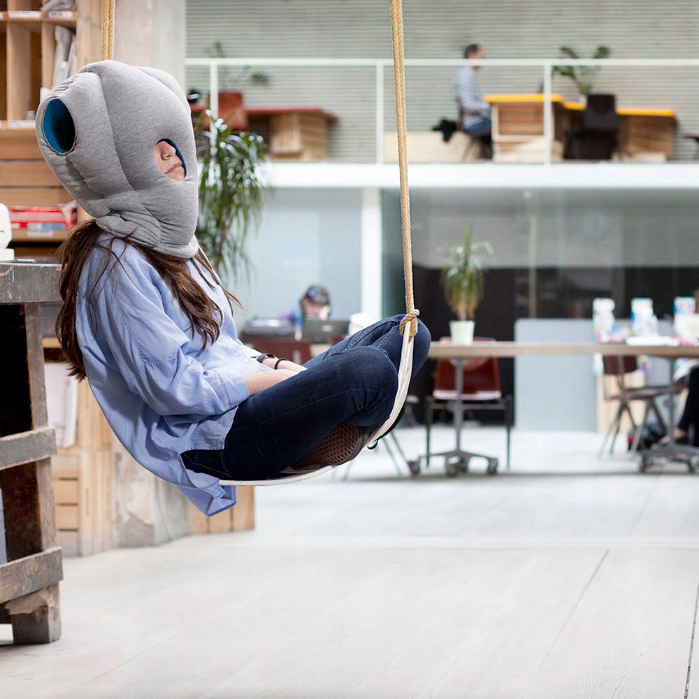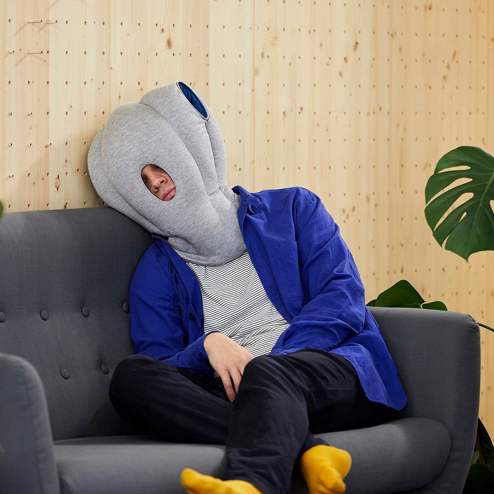 Блокуйте світло і все навколо, що може відволікати! Переживайте революційну подушку на сонці Ostrichpillow Origina у вашому домашньому офісі, літаку, вітальні і навіть у вашому ліжку. Подушка, схожа на кокон, яка блокує світло і забезпечує абсолютний комфорт від'єднання від світу. відповідає за винахід нових категорій продуктів, що сприяють свердловині. Спеціально розроблений передній отвір дозволяє легко дихати ніс і губи, а також два додаткові отвори, завдяки тому, які руки можуть зручно ковзати над головою