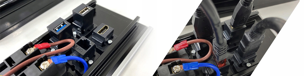 Увага! Продукт доступний у версії Keystone (кабелі в комплект не входять). Щоб отримати доступ до внутрішньої частини медіапорту, відкрутіть чотири гвинти з одного боку, зніміть бічну стінку та зніміть кришку, посунувши її.