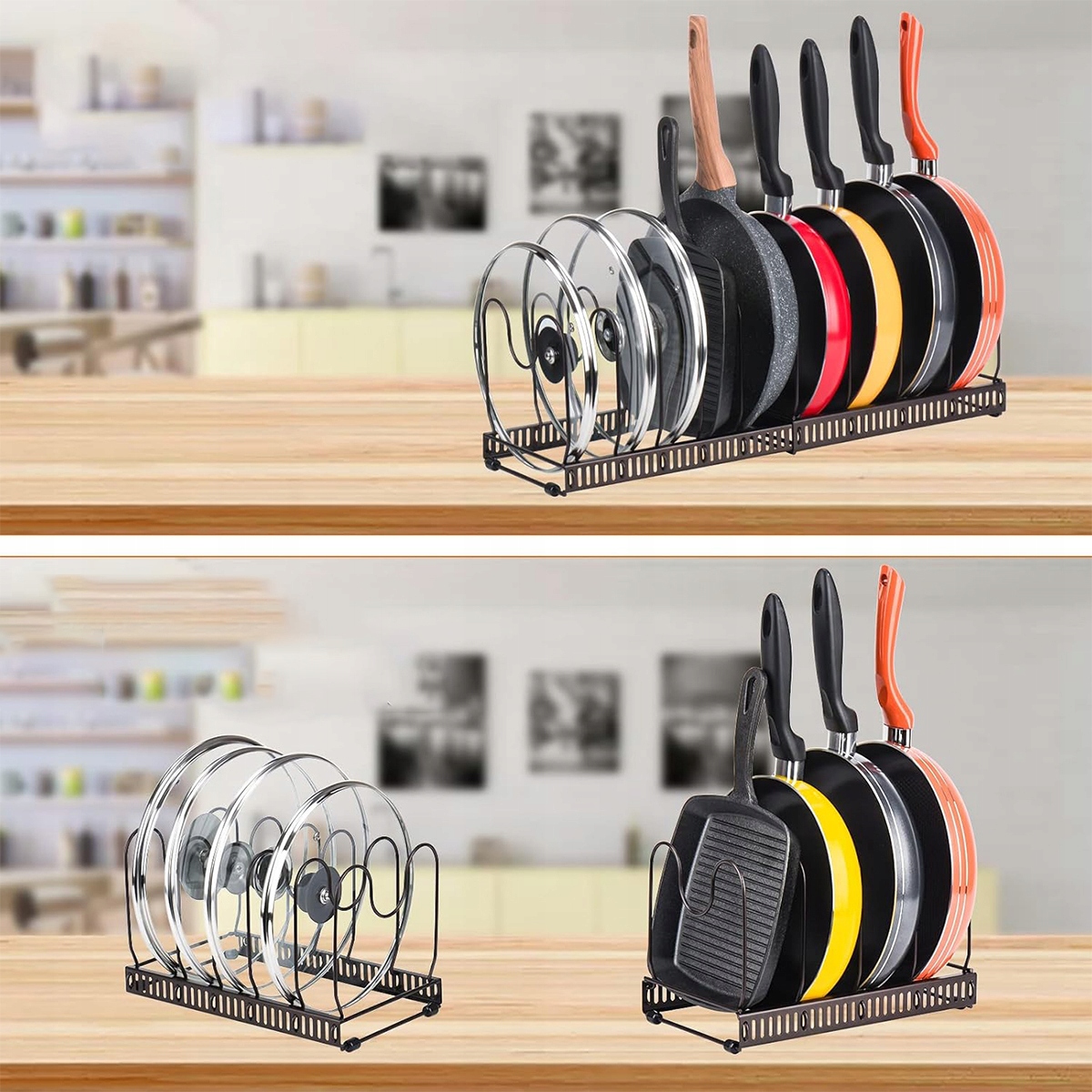 🎈Регульований тримач для каструль, кришка, контейнер для каструль на 10 відділень, металевий тримач для кухонної кришки, органайзер для каструль (чорний)