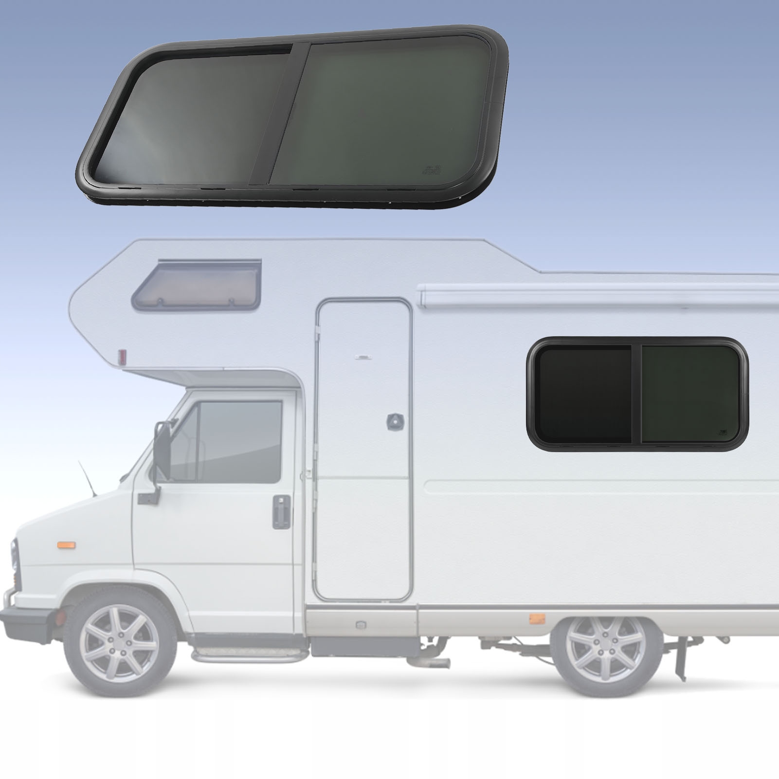 Застосування: тоновані вікна з москітними сітками захищають вашу приватність і гарантують, що сонячне світло не нагріває салон вашого автофургону, повністю герметичні вікна зберігають прохолоду влітку та тепло взимку, використовуються на складах, виставкових залах, вітальнях або будь-де, де потрібні вікна, можуть використовуватися для модернізації караванів та інших проектів