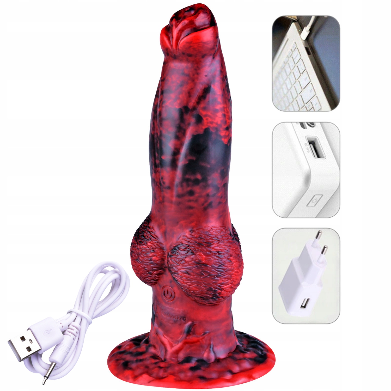 Анальний фалоімітатор із рухом вперед-назад має вбудований акумулятор, який заряджається за допомогою USB-кабелю, що входить у комплект.