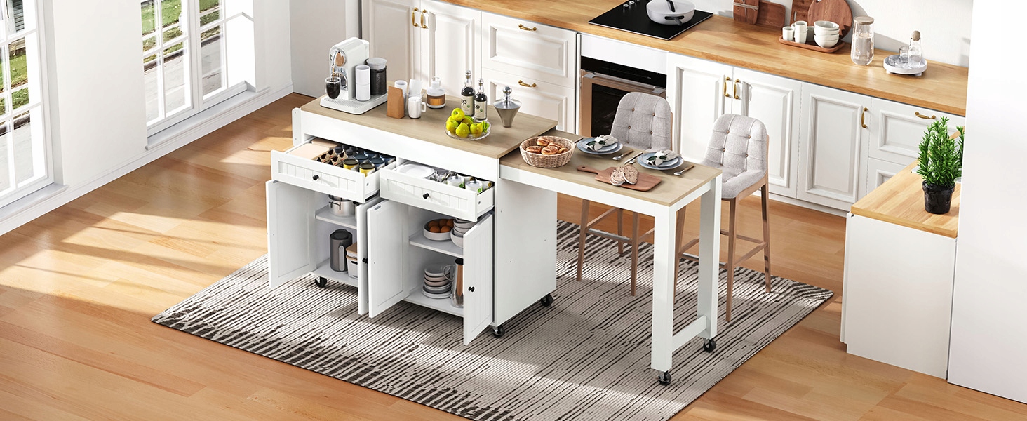 Розсувний бічний стіл з шафою для зберігання, мобільний кухонний острів