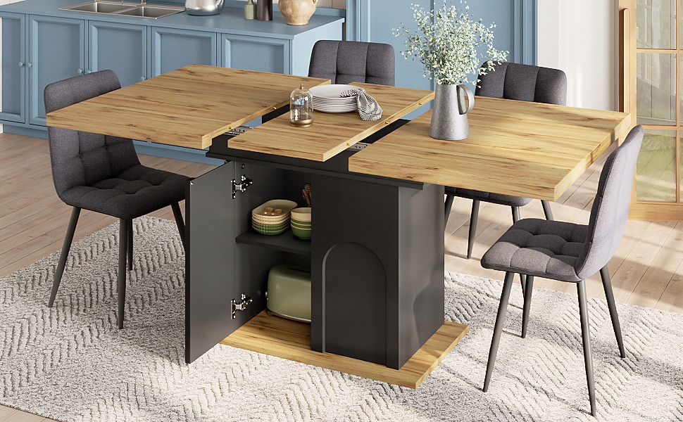 Розсувний обідній стіл (110-140 х 80 см) з місцем для зберігання.