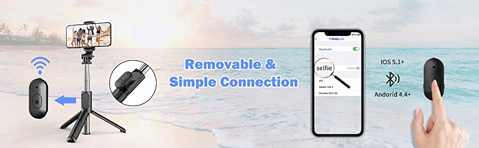 Bluetooth Selfie Stick, 4-в-1 розширювана Bluetooth-штативна палиця для селфі зі знімним бездротовим пультом дистанційного керування, сумісний із iPhone/Galaxy/Huawei тощо (4,7–6,7 дюйма).