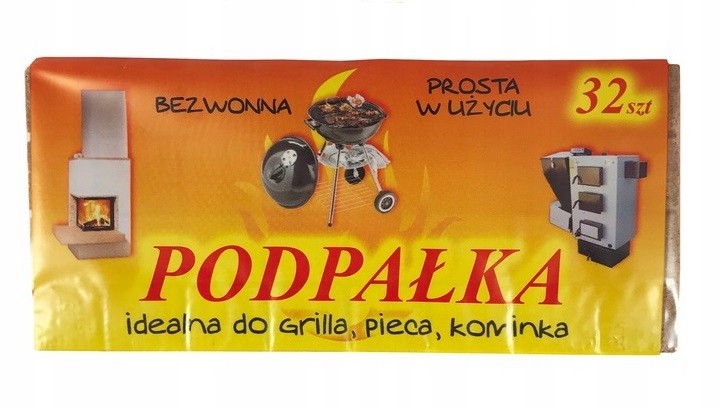 Розпалювання для барбекю, у вигляді коричневої пластини, розділеної на 32 кубики. Розтопка призначена для розпалювання печі, каміна або гриля. Характеризується високою якістю та тривалим часом горіння.