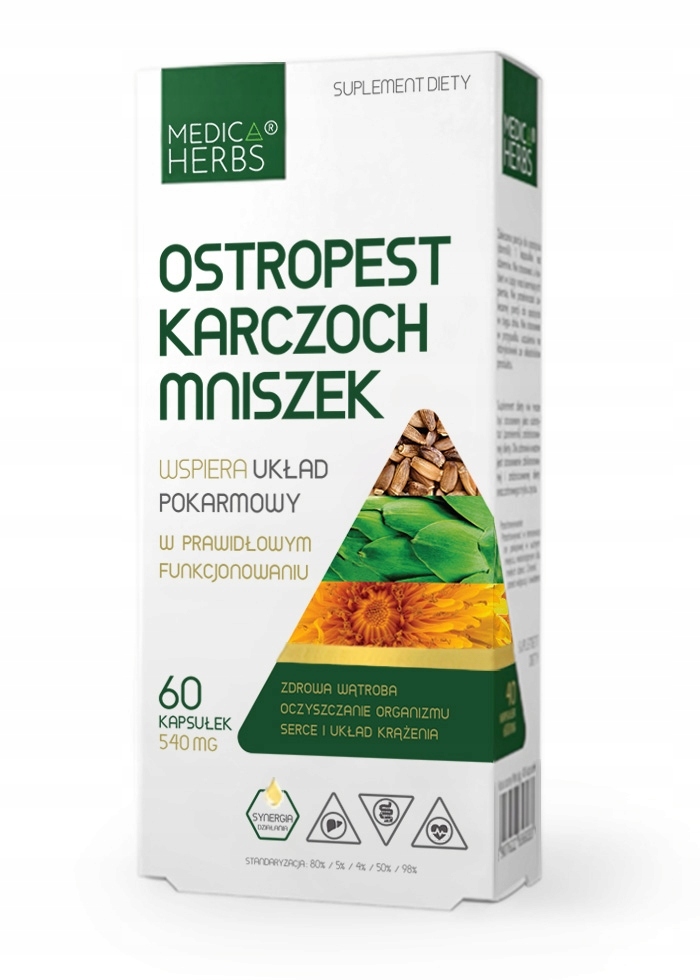 Розторопша, артишок і кульбаба разом підтримують правильну роботу травної системи та печінки. Розторопша підтримує її природний захист і регенерацію. Кульбаба і артишок допомагають при проблемах з шлунково-кишковим трактом. Крім того, артишок допомагає підтримувати належний рівень ліпідів у крові, що сприяє підтримці належного стану серця та кровоносної системи.