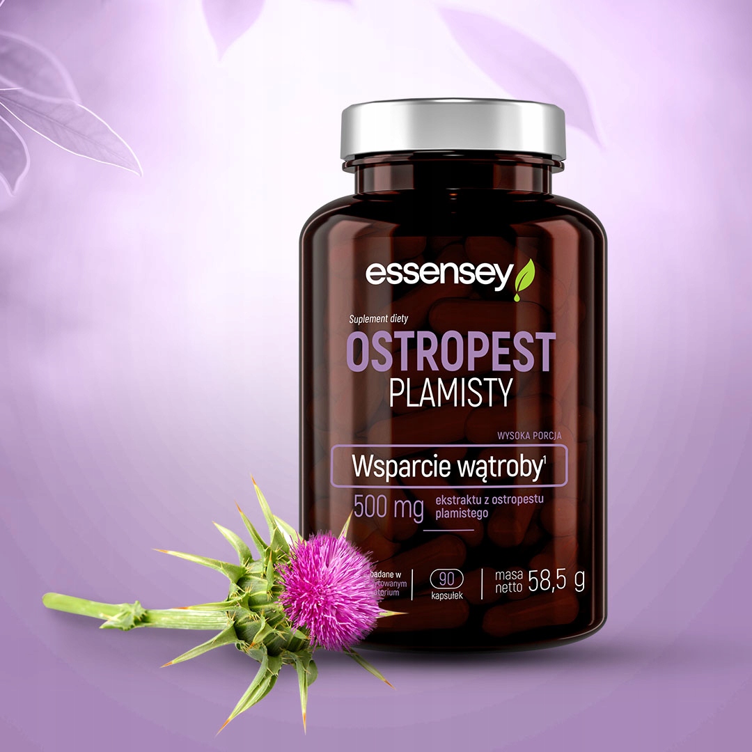 ESSENSEY Milk thistle Дієтична добавка (Silybum marianum) містить екстракт насіння розторопші, який підтримує підтримку фізіологічних функцій очищення печінки та сприяє захисту печінки1,2.