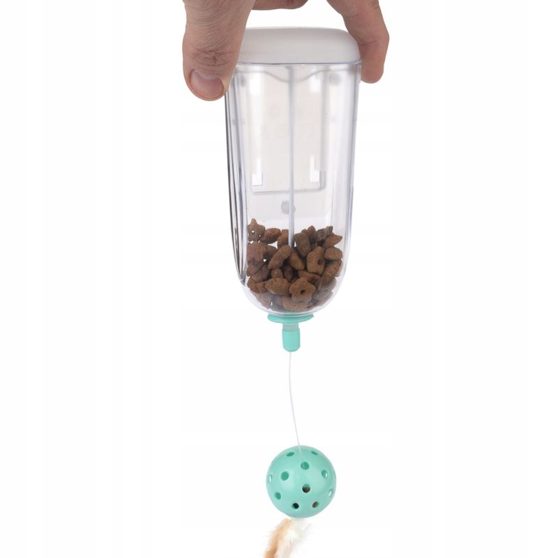 Гральний м’яч на кінці шнурка полегшує роботу ваш вихованець, щоб схопити та контролювати кришку пляшки. Дзвіночки та розвіваються пір'я, інтегровані в м'яч, викликають котячу гру та мисливський інстинкт, завдяки чому розуміння механізму може бути досягнуто досить невимушеним способом. Успіх підвищує впевненість у собі, а отже, задоволення та врівноваженість вашого вихованця. Розумна іграшка TIAKI Snack Hunter сприяє різноманітності, розвагам і викликам повсякденного життя у фізичному та психічному сенсі.