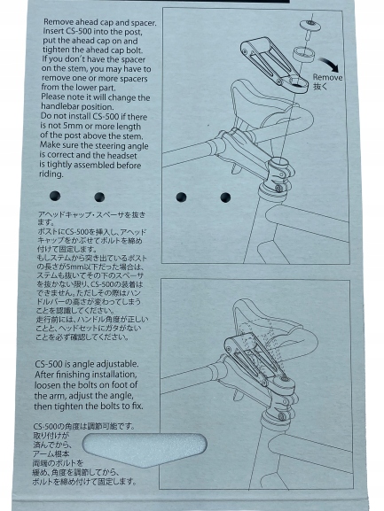 - Spacer Grip CS-500 можна встановити над або під мостом керма замість затискача товщиною 10 мм.