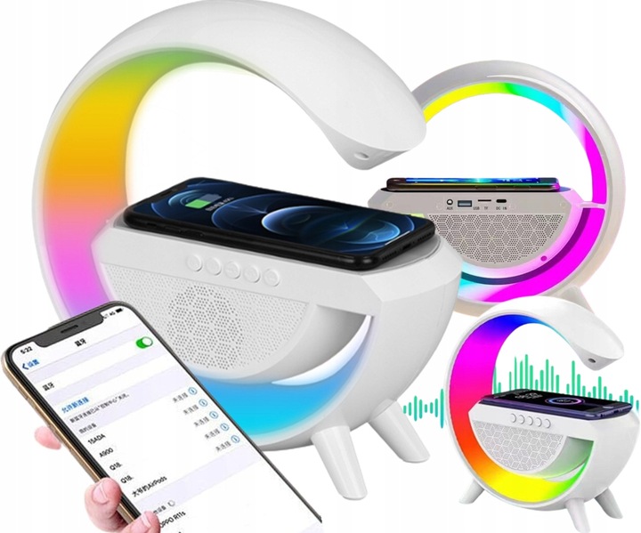 - Продукт: Інтелектуальна світлодіодна лампа RGB з індуктивним зарядним пристроєм, будильником і динаміком