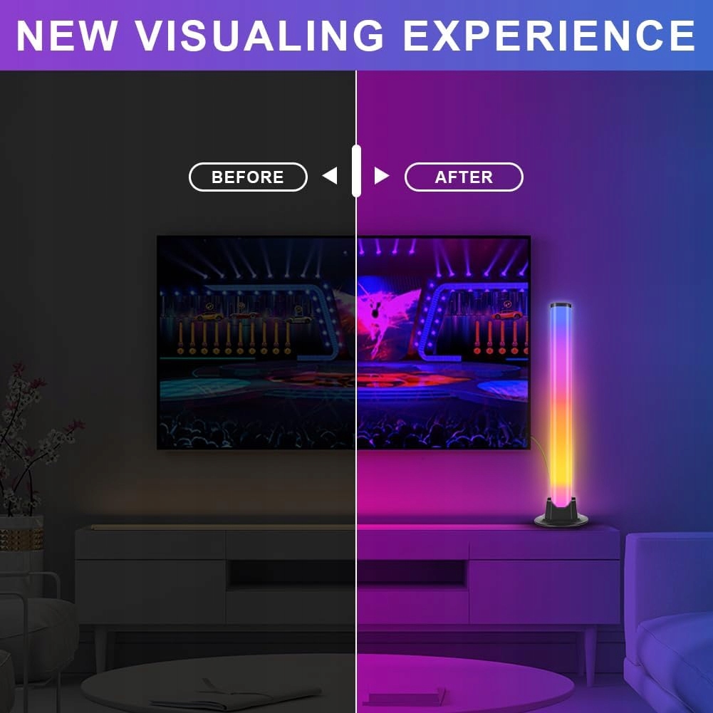 ✨Розумну світлодіодну лампу RGB можна встановити швидко та легко, просто розташуйте світлову стрічку горизонтально або вертикально на двох основах, а потім під’єднайте USB-кабель із комплекту і ви можете грати в ігри, дивитися фільми або створювати атмосферу різних сцен. Надзвичайне задоволення, яке дозволить вам повністю зануритися у світ мистецтва.