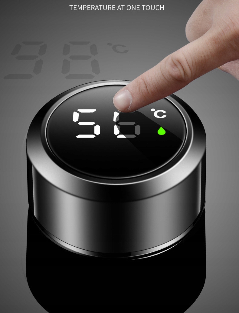 - ВИМІРЮЄ ТЕМПЕРАТУРУ - ця унікальна термокружка є надзвичайно практичним рішенням, яке дозволить вам контролювати температуру рідини, що міститься в ній. Він стане ідеальним контейнером для кави, напоїв, пива або фруктових соків. Він може зберігатися гарячим або холодним протягом 8 годин. На кришці термокружки є світлодіодний дисплей, який показує температуру рідини всередині. Досить лише одного дотику, щоб показати поточну температуру.