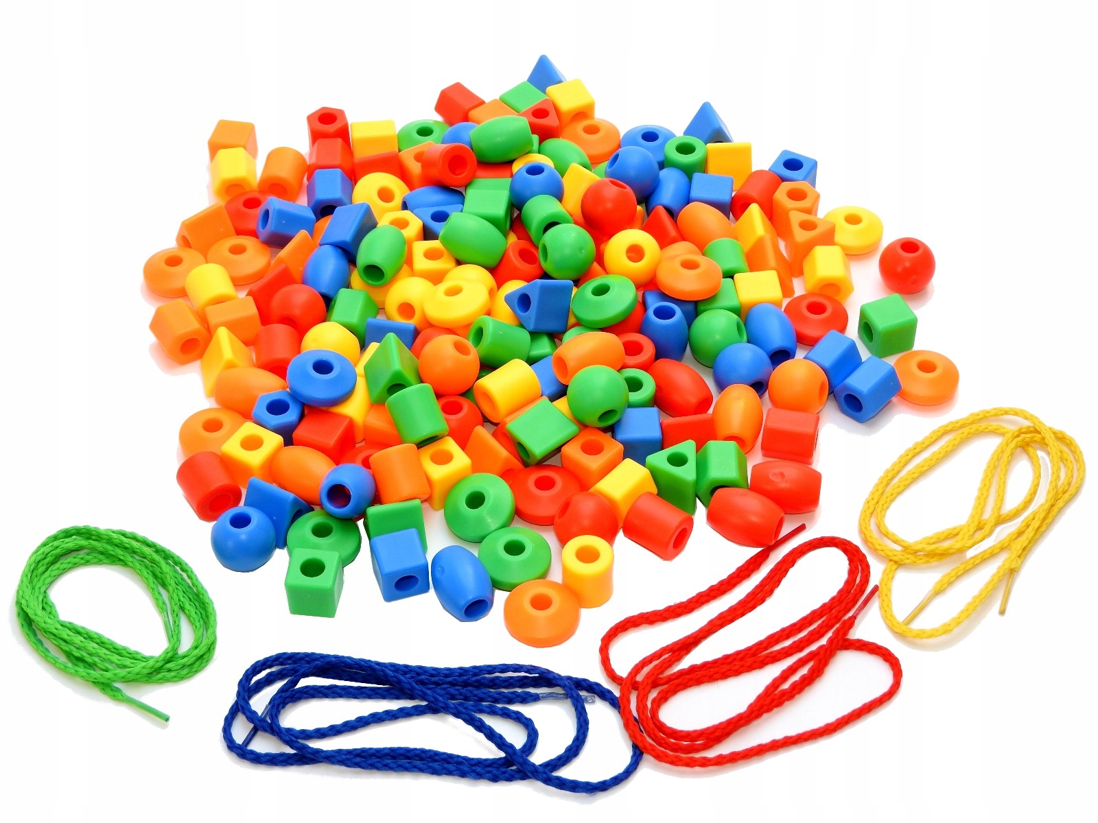 Набір різнокольорових намистин різних форм і розмірів.