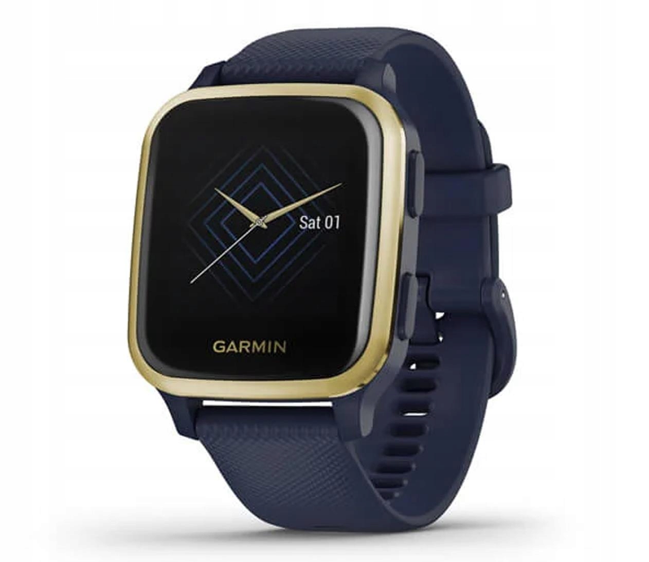 Предметом продажу є GPS-розумний годинник Garmin Venu SQ Music темно-синього та золотого кольору.