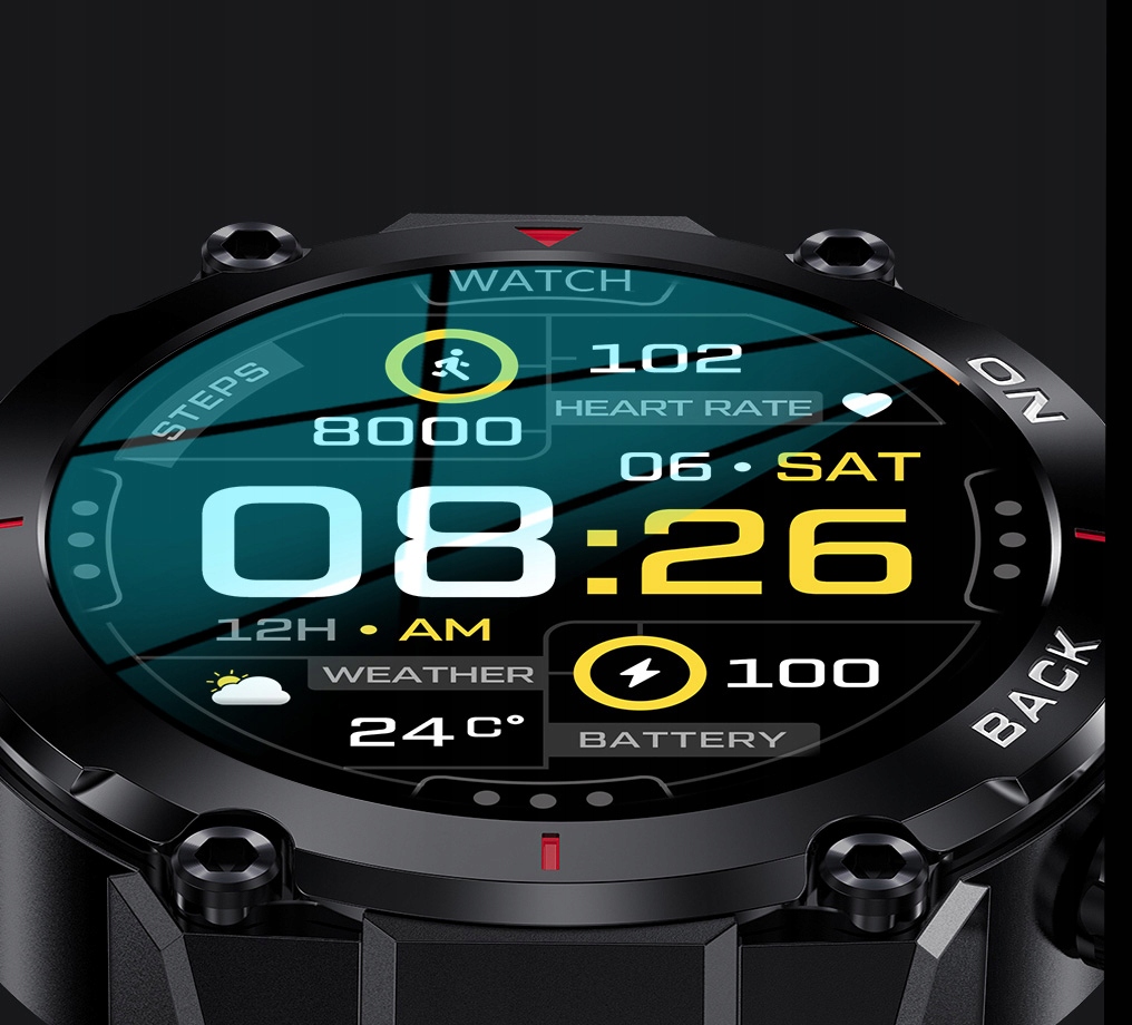 SmartWatch має повністю сенсорний великий кольоровий IPS-екран із високою роздільною здатністю 360x360 пікселів< /b >. Завдякикласу водонепроникності IP67з ним легко мити руки або навіть плавати! Смарт-годинник має дуже ємний акумулятор на 480 мАг, що дозволяє використовувати годинник приблизно (в середньому) 7-10 днів - при використанні функції GPS час буде скорочений .