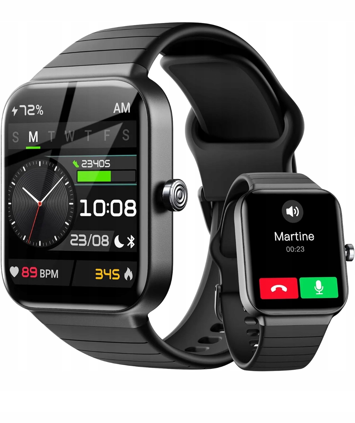Розумний годинник із функцією телефону на зап’ясті: розумний годинник пропонує чіткі дзвінки завдяки вбудованому мікрофону та потужним динамікам. Ви можете отримувати дзвінки, повідомлення та сповіщення з додатків (WhatsApp, Facebook тощо) прямо на зап’ясті, не потребуючи використання телефону. З нашим розумним годинником вам не доведеться турбуватися про те, що ви втратите важливу інформацію, навіть коли ви зайняті.