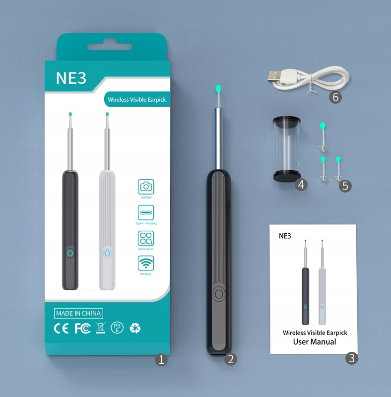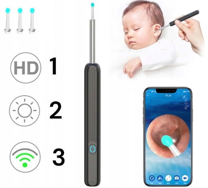 - ✅Повний огляд - завдяки камері на 360° наш пристрій дозволяє точніше оглянути внутрішню частину вуха, що дозволяє точно очищати та контролювати процес.