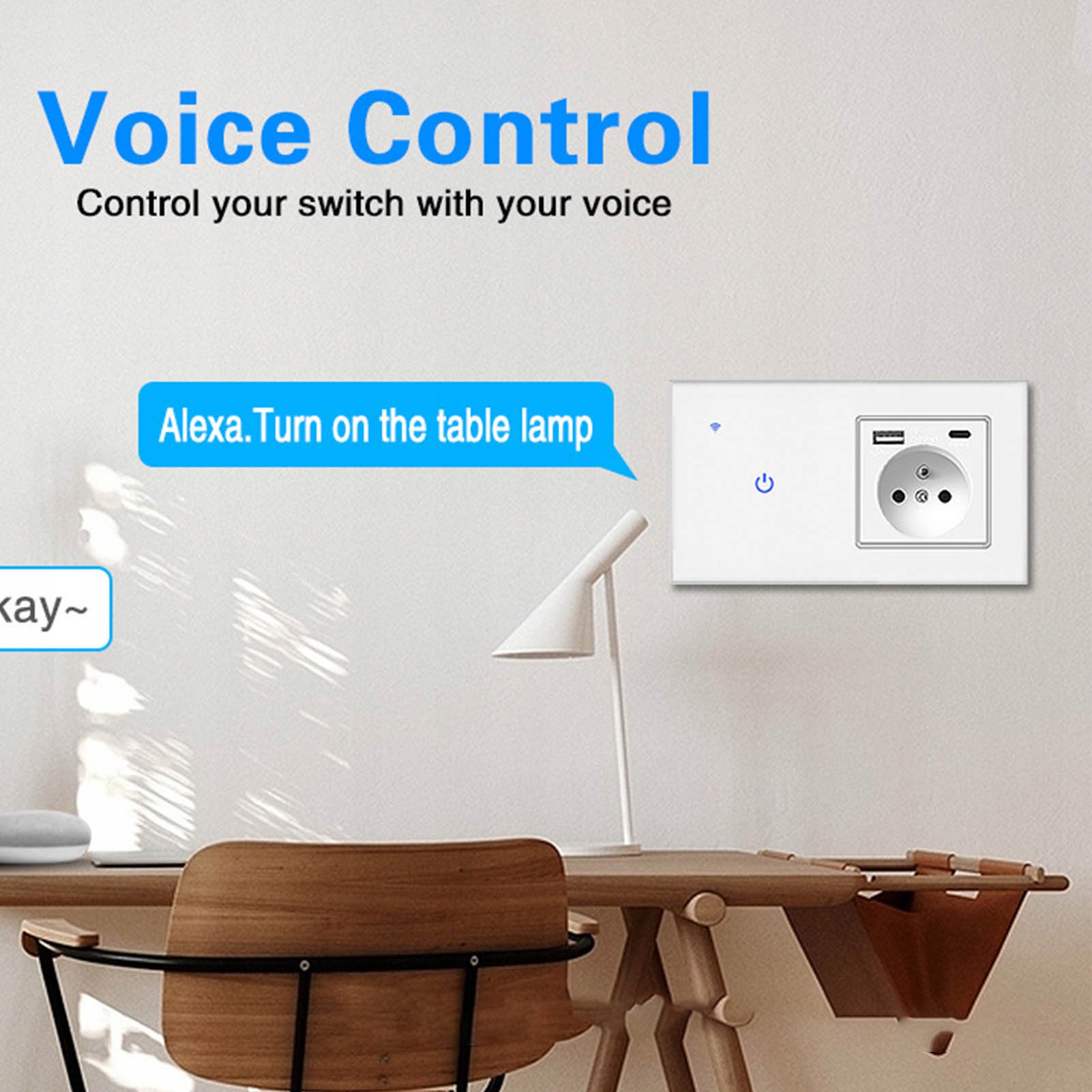 Розумний комутатор Wi-Fi із подвійною прихованою настінною розеткою USB. Голосове управління через додаток. Стандарт ЄС AC100-240VAC