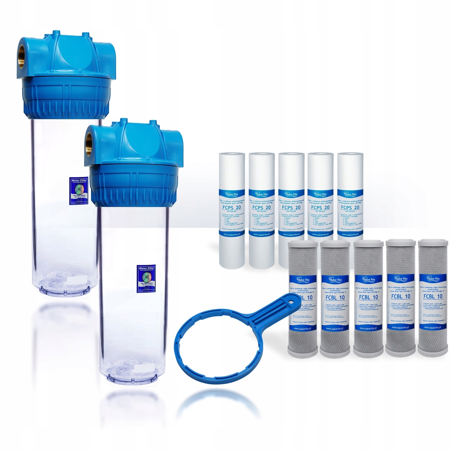 - 2 x 10" aquafilter трубчастий корпус, розмір з’єднання - 3/4''