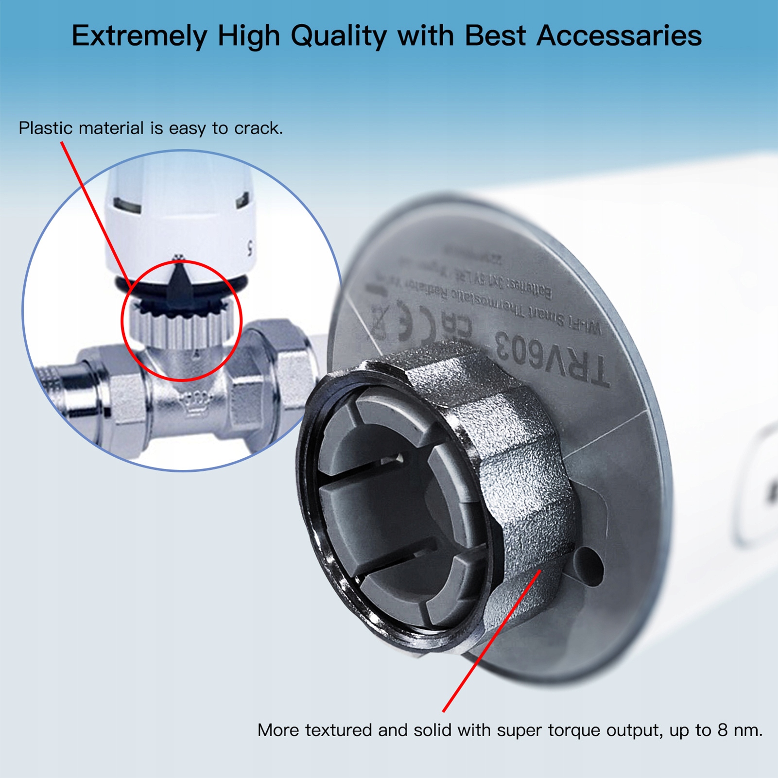 1, ЧІТКИЙ ДИСПЛЕЙ: Цей термостатичний радіаторний клапан використовує точковий світлодіодний дисплей, чіткий і легкий для читання, стильний і великий. 2, ВИСОКИЙ КРУТНИЙ МОМЕНТ: цей клапан радіатора можна затягнути до 8 Нм, щоб забезпечити відмінну продуктивність і стабільну продуктивність. 3, ДИСТАНЦІЙНЕ КЕРУВАННЯ: цим радіаторним клапаном можна дистанційно керувати за допомогою мобільного додатка, і його можна дуже зручно визначати за часом. 4, ІНТЕЛЕКТУАЛЬНИЙ ДИЗАЙН: інтелектуальна конструкція керування клапаном радіатора значно підвищує зручність життя та ідеально підходить для використання в приміщенні. 5, ABS МАТЕРІАЛ: Корпус цього термостатичного нагрівача виготовлено з ABS, ізольований та ізольований, міцний та зносостійкий.