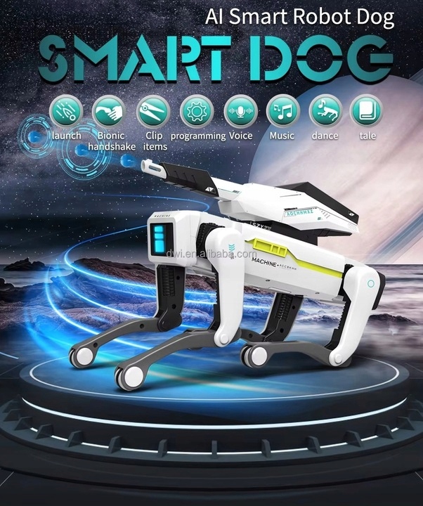 Розумний робот-собака з функцією стрільби водяними ракетами - програмований і керований голосом