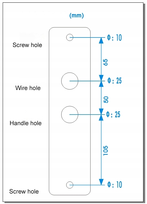 - Верхній і нижній отвори для кріплення гвинтів: діаметр Φ10 мм, центральна відстань між двома отворами 65 мм.