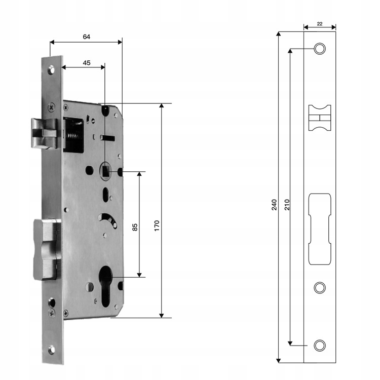 - Товщина дверей: розроблено для стандартних безпечних дверей товщиною від 35 мм (1,4 дюйма) до 55 мм (2,2) дюйм) дюйм). Для різних товщин у цьому діапазоні надаються аксесуари для правильного встановлення.