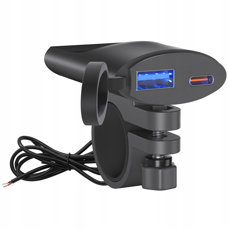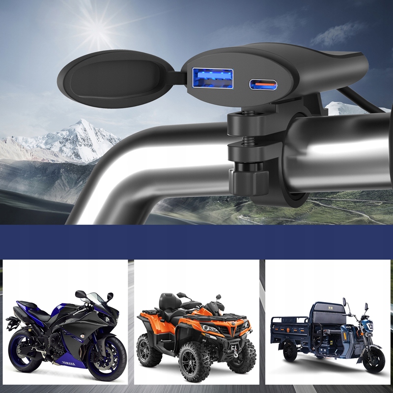 Подвійний зарядний пристрій для мотоцикла USB-A + Type-C для швидкого заряджання.