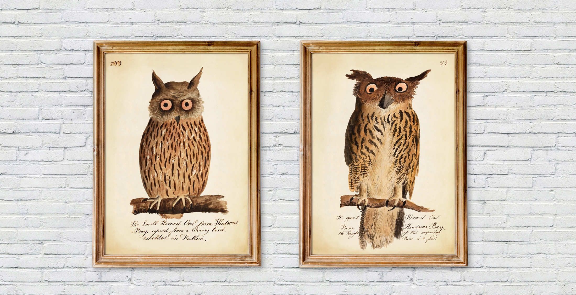 Розважальна сова, стара графіка, смішний передрук вінтаж для домашнього декору
